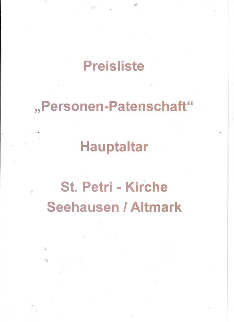 Der Kostenvoranschlag liegt bei rund 42.000,00 €. Neben einem Antrag auf Fördermittel in Höhe von 20.000,00 € sind rund 22.000,00 € Eigenmittel durch den Verein aufzubringen. Der vorhandene Grundstock des Vereins liegt derzeit bei rund 10.000,00 €, so dass noch etwa 12.000,00 € benötigt werden. Dieser Bettrag soll, neben anderen Aktionen, durch den Erwerb einer "Personen-Patenschaft" erfolgen. Im Katalog sind die einzelnen Tafel mit den abgebildeten Personen aufgeführt, wobei nun die Möglichkeit besteht für eine Person " Pate" zu werden. Der Katalog liegt in der St. Petri-Kirche zur Ansicht aus.
