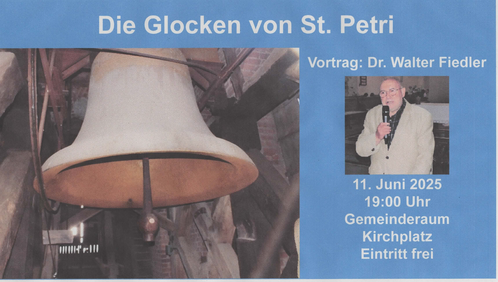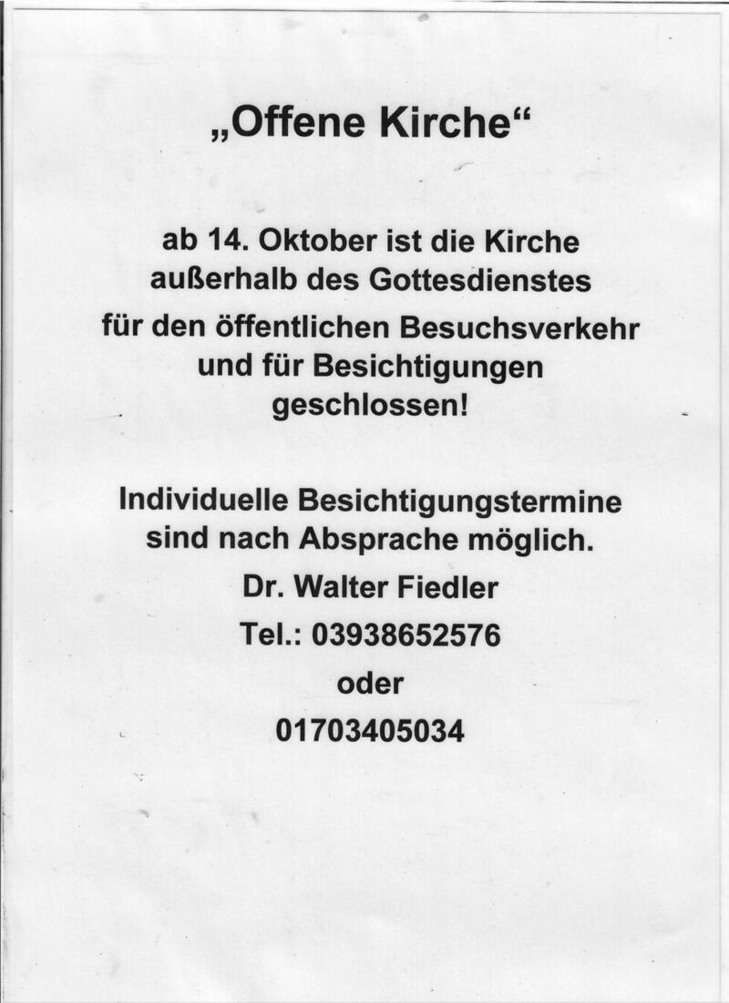 Die neue Besuchszeit unserer St. Petri-Kirche, im Rahmen der Aktion „Offene Kirche“, nähert sich. Ab dem 15. Mai sollen Besucher wieder die Möglichkeit haben, St. Petri und die Türmer-Wohnung zu besichtigen. Schon für Sonnabend, den 10. Mai hat sich eine Busreisegesellschaft mit 55 Personen angemeldet. Bis dahin gibt es noch einiges zu tun, besonders die Reinigung des Turmbereiches ist notwendig. Hans Kontak, Christian Buness und ich haben bereits begonnen, neue Erläuterungstafeln anzubringen (die alten waren recht verstaubt und wurden von mir erneuert), wobei noch einige ausgewechselt werden müssen.