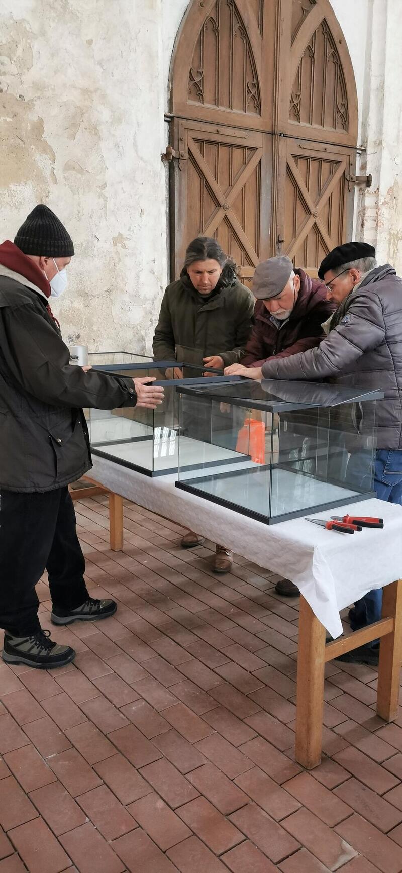 Am 6. Dezember trafen sich Mitglieder der Kirchengemeinde, des Fördervereins, der unteren Denkmalschutzbehörde und des Landesamtes für Denkmalpflege um über Massnahmen der Restaurierung und der Standortfrage zu beraten.